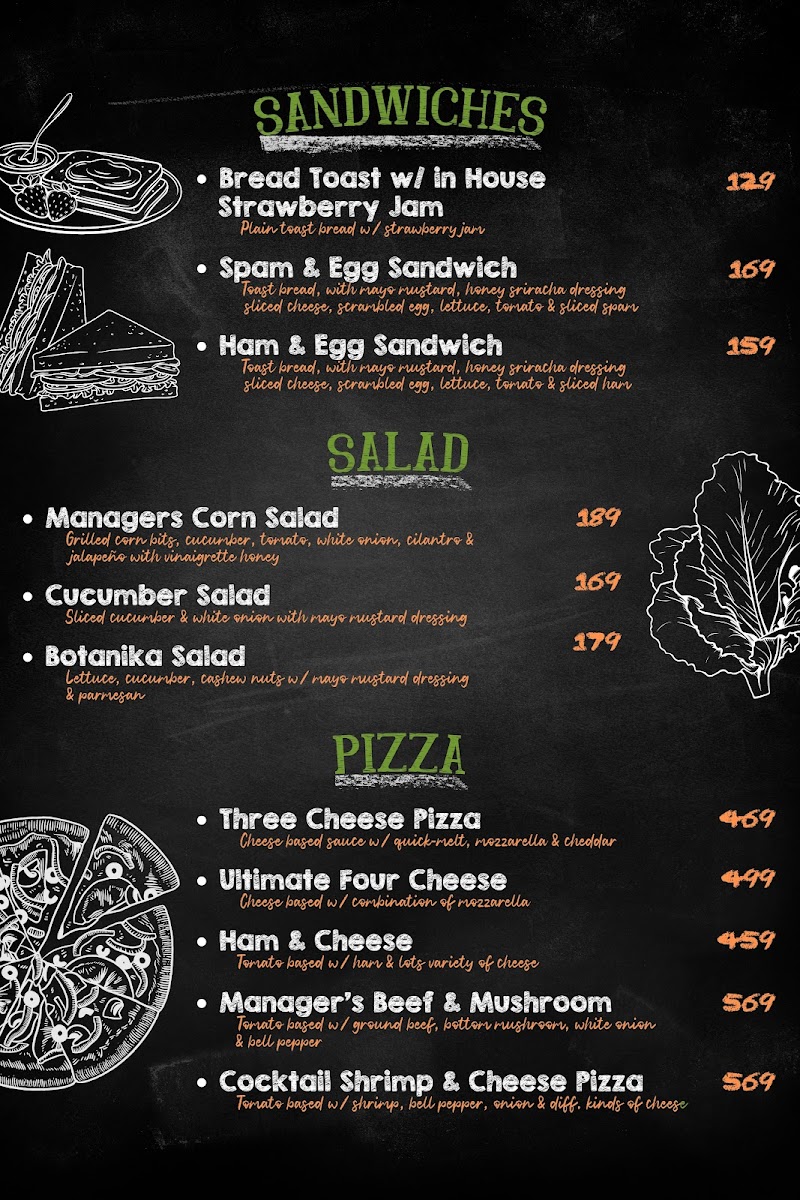 The menu at Cafe Botanika offers a variety of options suitable for coffee breaks, light meals, and casual dining experiences. Visitors can expect a selection of coffee beverages, including cafe lattes, alongside other drink choices.