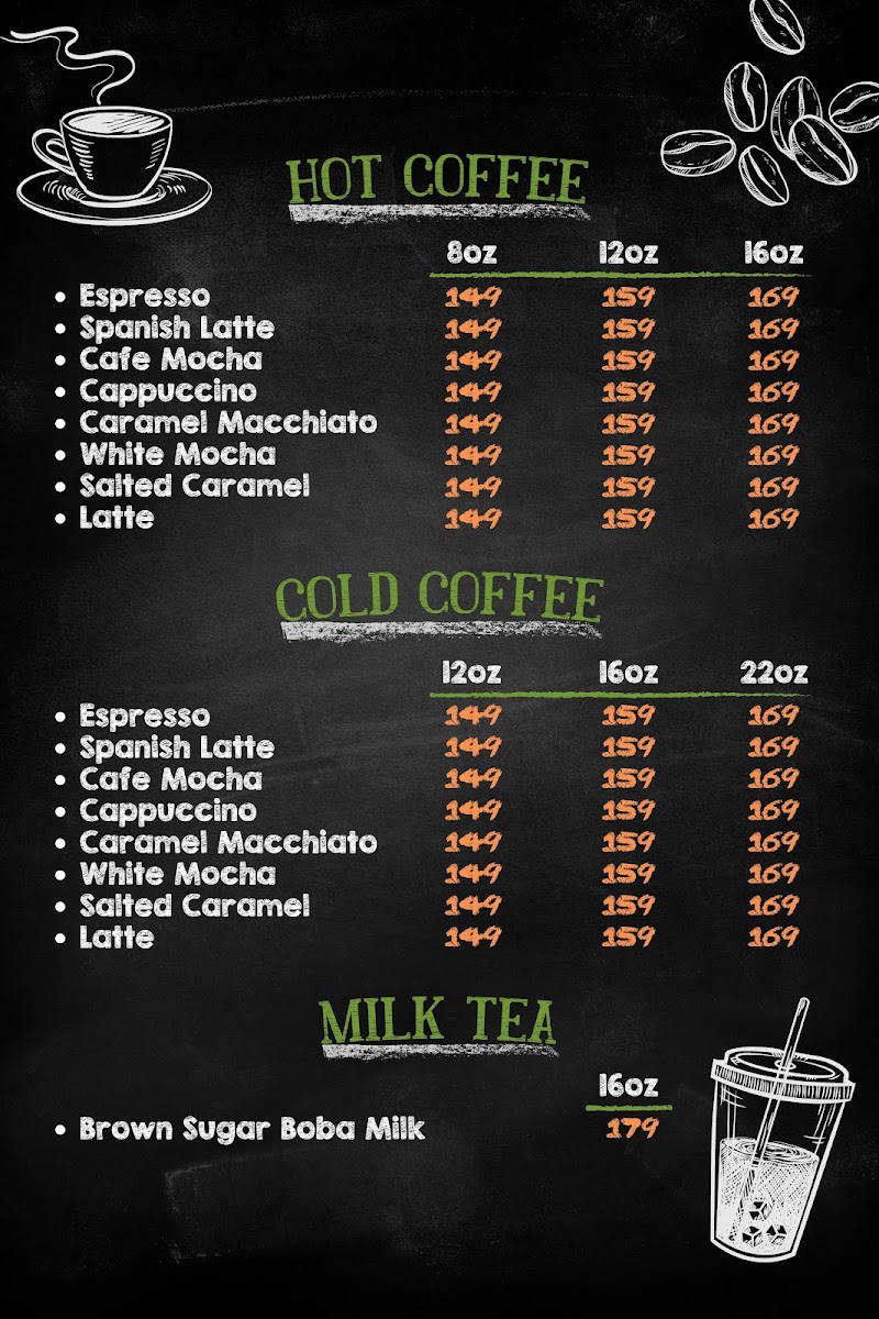 - Drinks: A range of coffee and possibly other beverages suitable for casual consumption.
